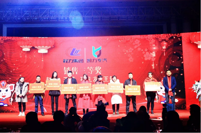 湖北程力集團.凱力專汽環(huán)衛(wèi)車公司2019年會(凱歌高湊,力拔頭籌) 故,歲末 一場盛大而又歡快的年會 用儀式感恩回饋一年的辛苦工作 更為新一年度奏響序曲 光陰似箭,歲月如梭,在忙碌中我們不知不覺地走過了一年。我們告別了成績斐然的2018年,迎來了充滿希望的2019,至此新年(新春)到來之際,我們在此給所有凱力家人和朋友提前拜年! 回望這一年,凱力與大家共度了365個日夜星辰,一路陪伴共同成長,風風雨雨同舟共濟,您與凱力不止是遇見,更是同心、同路、同德。 年會現(xiàn)場充滿了激情、熱烈、活躍的氣氛。首先,程力集團副總趙總上臺發(fā)表了致詞,他對我們凱力寄予了深深的希望和祝福,希望大家拿出激情和 在過去一年里,公司成員逐步增加。公司的銷售額也正在逐步增長,這些都離不開公司全體成員的耕耘和付出。此次凱力公司梁總上臺發(fā)表致詞和頒發(fā)優(yōu)秀員工獎勵,凱力的發(fā)展離不開員工的汗水與努力,凱力優(yōu)秀的員工是凱力的脊梁,是凱力文化和凱力精神的具體體現(xiàn)。