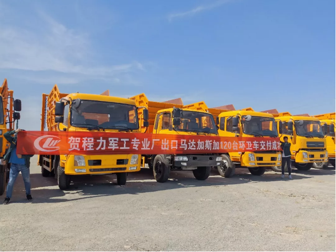 湖北程力汽車120輛擺臂式垃圾車出口馬達加斯加,為保護綠色地球打贏藍天保衛(wèi)戰(zhàn)貢獻中國力量