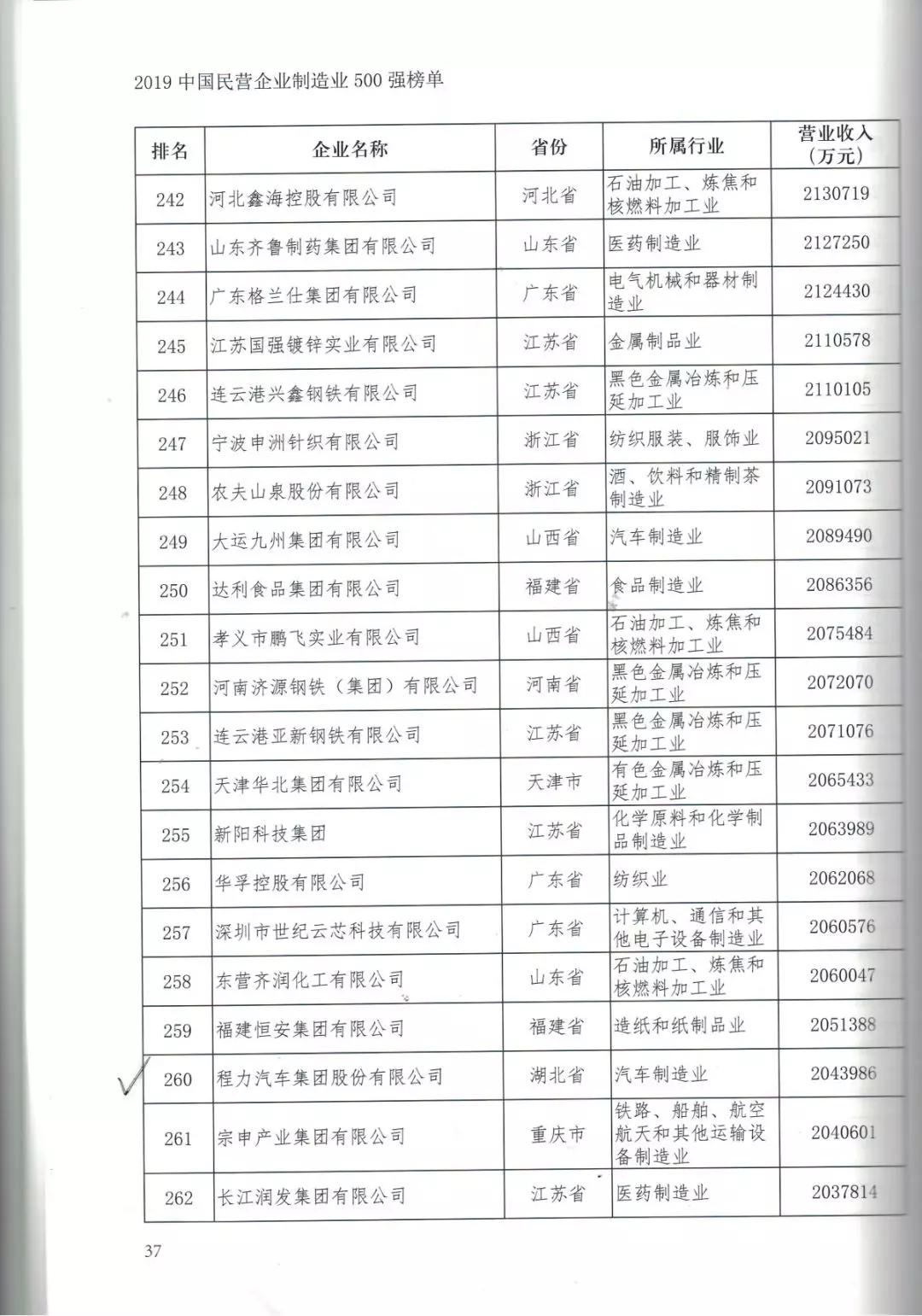 湖北程力汽車(chē)集團(tuán)入選2019年中國(guó)民企500強(qiáng)及中國(guó)民企制造業(yè)500強(qiáng)榮譽(yù)榜單