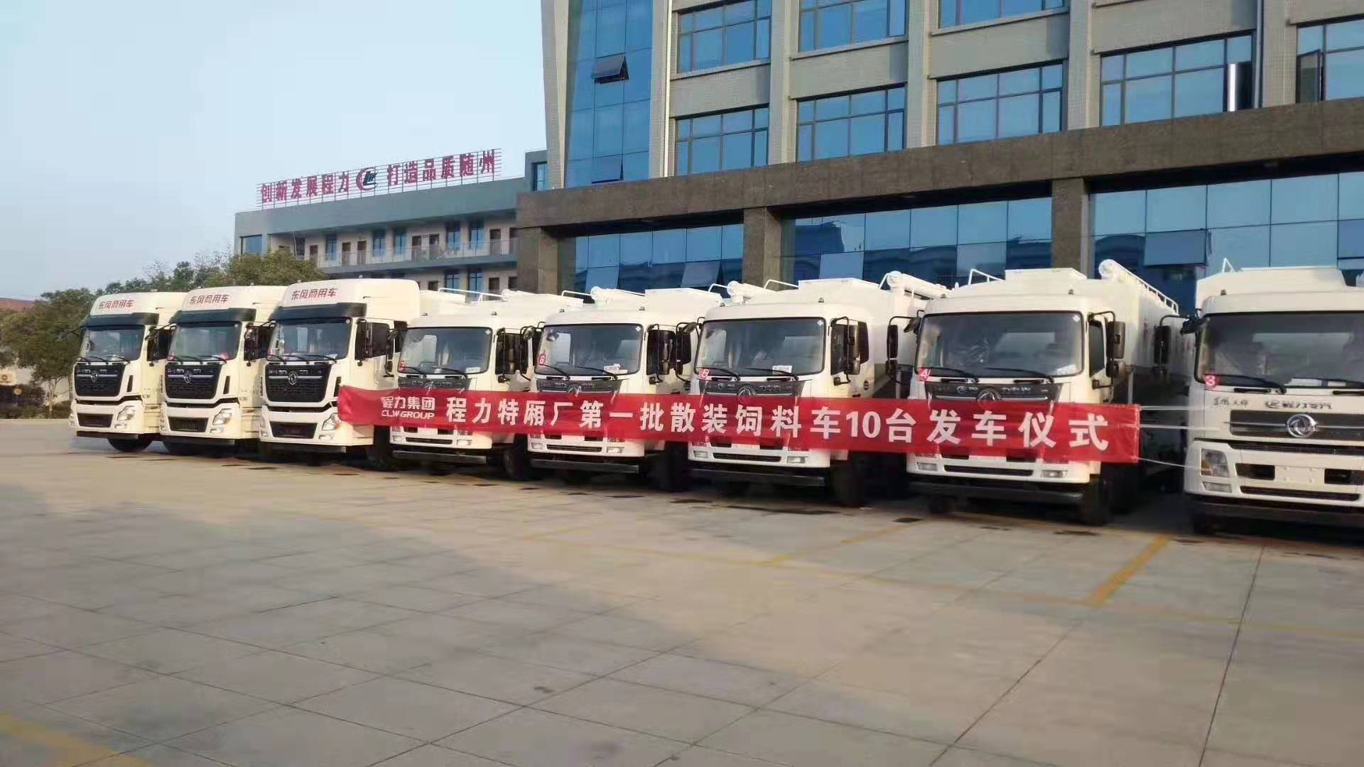 武漢軍運(yùn)會期間湖北程力散裝飼料車批量發(fā)車