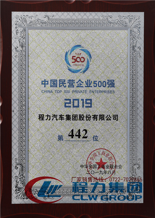 程力汽車集團(tuán)2019年中國(guó)民營(yíng)企業(yè)500強(qiáng)榜上有名比去年穩(wěn)中上升