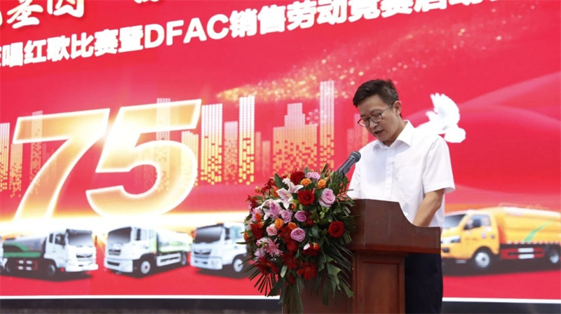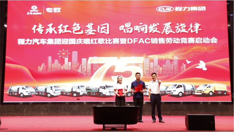 今日中國(guó),欣欣向榮,江山如此多嬌,我們用拼搏的汗水,把捷報(bào)頻傳寫在美麗中國(guó)的答卷里;今日中國(guó),人民豪邁勇毅前行砥礪前行,我們用實(shí)干成就夢(mèng)想,把溫暖人心的故事,寫在幸福中國(guó)的答卷里;今日中國(guó),前程似錦,在實(shí)現(xiàn)中華民族偉大復(fù)興中國(guó)夢(mèng)的新征程上,我們昂首闊步,把日新月異的發(fā)展,寫在奮進(jìn)中國(guó)的答卷里;征途漫漫,惟有奮斗,讓我們一起唱響中國(guó)夢(mèng)祖國(guó)頌的歡歌,共同祝福偉大的祖國(guó)蒸蒸日上、和諧美好。 程力汽車集團(tuán)董事長(zhǎng)程阿羅在盛會(huì)上致詞,向參加唱紅歌比賽的全體參賽隊(duì)員和與會(huì)代表,致以了親切問(wèn)候!對(duì)東風(fēng)股份有限公司的領(lǐng)導(dǎo)嘉賓及東風(fēng)股份歌唱團(tuán)的成員,表示了衷心的感謝!同時(shí),程董祝福全球用戶及上游下游產(chǎn)業(yè)鏈供應(yīng)商、服務(wù)商,海外華人華僑、港澳同胞、臺(tái)灣同胞國(guó)慶節(jié)快樂(lè),祝福祖國(guó)繁榮富強(qiáng),人民幸福安康。 東風(fēng)汽車股份有限公司營(yíng)銷總部專用車事業(yè)部總經(jīng)理龔大為先生,作了熱情洋溢的講話。龔總與大家一起回顧了東風(fēng)公司與程力汽車集團(tuán),肩并肩攜手共同深耕專用汽車市場(chǎng)的發(fā)展歷程,描繪了共同開(kāi)創(chuàng)美好未來(lái)新希望、新征程、新目標(biāo)。 程力汽車集團(tuán)與東風(fēng)股份已經(jīng)攜手并肩走過(guò)了16年,程力與東風(fēng)彼此同心同德,相互陪伴、相互學(xué)習(xí)、相互成就,東風(fēng)股份將始終堅(jiān)守“貢獻(xiàn)社會(huì),成就伙伴”的初心,與程力一路同行,共同推進(jìn)國(guó)內(nèi)專改行業(yè)的技術(shù)進(jìn)步,為專改行業(yè)的高質(zhì)量發(fā)展做出了卓越的貢獻(xiàn)。東風(fēng)股份作為中國(guó)汽車行業(yè)大型央企,為本次活動(dòng)特派東風(fēng)股份合唱團(tuán),獻(xiàn)唱《團(tuán)結(jié)就是力量》、《光榮與夢(mèng)想》。 DFAC以先進(jìn)的生產(chǎn)技術(shù),過(guò)硬的產(chǎn)品質(zhì)量,無(wú)憂的售后服務(wù),深得終端用戶的青睞;東風(fēng)股份營(yíng)銷總部專用車事業(yè)部特級(jí)講師曹紹成老師,為啟動(dòng)會(huì)帶來(lái)東風(fēng)股份重磅產(chǎn)品推介。 在唱紅歌比賽環(huán)節(jié),程力汽車集團(tuán)公司共有10個(gè)演出團(tuán)隊(duì)參加了比賽,他們分別是:程力底盤供銷總公司參賽團(tuán)隊(duì)參賽歌曲為《我們走在大路上》、程力專用汽車股份有限公司參賽歌曲是《國(guó)家》、程力應(yīng)急裝備制造湖北有限公司參賽節(jié)目是《大中國(guó)》、程力特種車輛制造有限公司參賽歌曲是《今天是你的生日中國(guó)》、程力隨車裝備制造湖北有限公司參節(jié)目是《歌唱祖國(guó)》、程力新能源汽車制造股份有限公司參謀歌曲是《明天會(huì)更好》、集團(tuán)財(cái)務(wù)管理中心參賽的歌曲是《燈火里的中國(guó)》、善建金融服務(wù)有限公司參賽的節(jié)目是《我宣誓》、程力汽車制造有限公司演唱的歌曲是《我和我的祖國(guó)》、程力國(guó)際貿(mào)易有限公司參賽的歌曲是《沒(méi)有共產(chǎn)黨就沒(méi)有新中國(guó)》。 我們用歌聲追隨的光,是五角星的星光,星光所到之處,皆是華夏最美的模樣,愿以寸心寄華夏,且將歲月贈(zèng)湖海。在這個(gè)特別的日子里,讓我們發(fā)自內(nèi)心的真誠(chéng)祝福,祝福偉大的祖國(guó)母親,生日快樂(lè)! 東風(fēng)股份營(yíng)銷總部專用車隨州大區(qū)總監(jiān)王意翔先生為我們發(fā)布本次程力集團(tuán)&東風(fēng)股份底盤銷售勞動(dòng)競(jìng)賽方案。 東風(fēng)汽車股份有限公司營(yíng)銷總部專用車事業(yè)部總經(jīng)理龔大為(右三)、程力汽車集團(tuán)董事長(zhǎng)程阿羅(左三)、程力汽車集團(tuán)黨委書記袁昌才(左二)、程力銷售總公司常務(wù)副總經(jīng)理袁美玲(左一)、程力汽車集團(tuán)總經(jīng)理朱武(右二)、東風(fēng)股份底盤事業(yè)部總經(jīng)理?xiàng)罱鹬ㄓ乙唬?/span>出席了“聚勢(shì)向前、東風(fēng)雄起”DFAC銷售勞動(dòng)競(jìng)賽啟動(dòng)儀式。 集團(tuán)公司黨委書記袁昌才(左一)、集團(tuán)總經(jīng)理朱武(右二)、集團(tuán)銷售總公司常務(wù)副總經(jīng)理袁美玲(右一),分別為紅歌比賽三等獎(jiǎng)獲得者底盤公司領(lǐng)隊(duì)李曉蔓(左二)、新能源公司團(tuán)隊(duì)黃辰龍(左三)、汽車公司團(tuán)隊(duì)張弘(右三)代表頒獎(jiǎng)。 東風(fēng)汽車股份有限公司營(yíng)銷總部專用車事業(yè)部總經(jīng)理龔大為先生(右一),為紅歌比賽二等獎(jiǎng)獲得者程力專汽公司領(lǐng)隊(duì)李濤(中)、財(cái)務(wù)中心團(tuán)隊(duì)王維維代表頒獎(jiǎng)。 程力汽車集團(tuán)公司董事長(zhǎng)程阿羅先生為一等獎(jiǎng)獲得者善建金融全體成員共同頒獎(jiǎng),并合影紀(jì)念。 程力汽車集團(tuán)公司董事長(zhǎng)程阿羅先生,為紅歌大賽特等獎(jiǎng)----《精神風(fēng)范獎(jiǎng)》獲得者東風(fēng)股份合唱團(tuán)代表頒發(fā)證書,并合影紀(jì)念。 程力汽車集團(tuán)中高層領(lǐng)導(dǎo)上臺(tái)集體合唱《程力之歌》,分享與祖國(guó)共榮光的豪邁與榮耀。 紅歌大賽的晚會(huì)