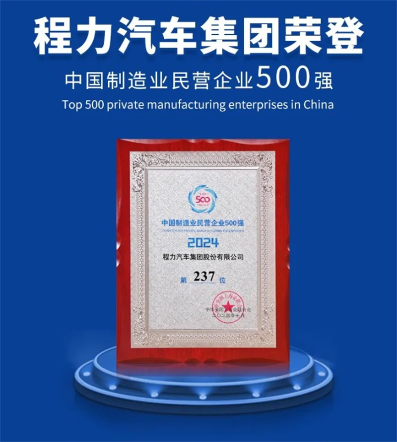 程力汽車(chē)集團(tuán)再次榮登2024中國(guó)民企500強(qiáng),改革創(chuàng)新建世界一流企業(yè)