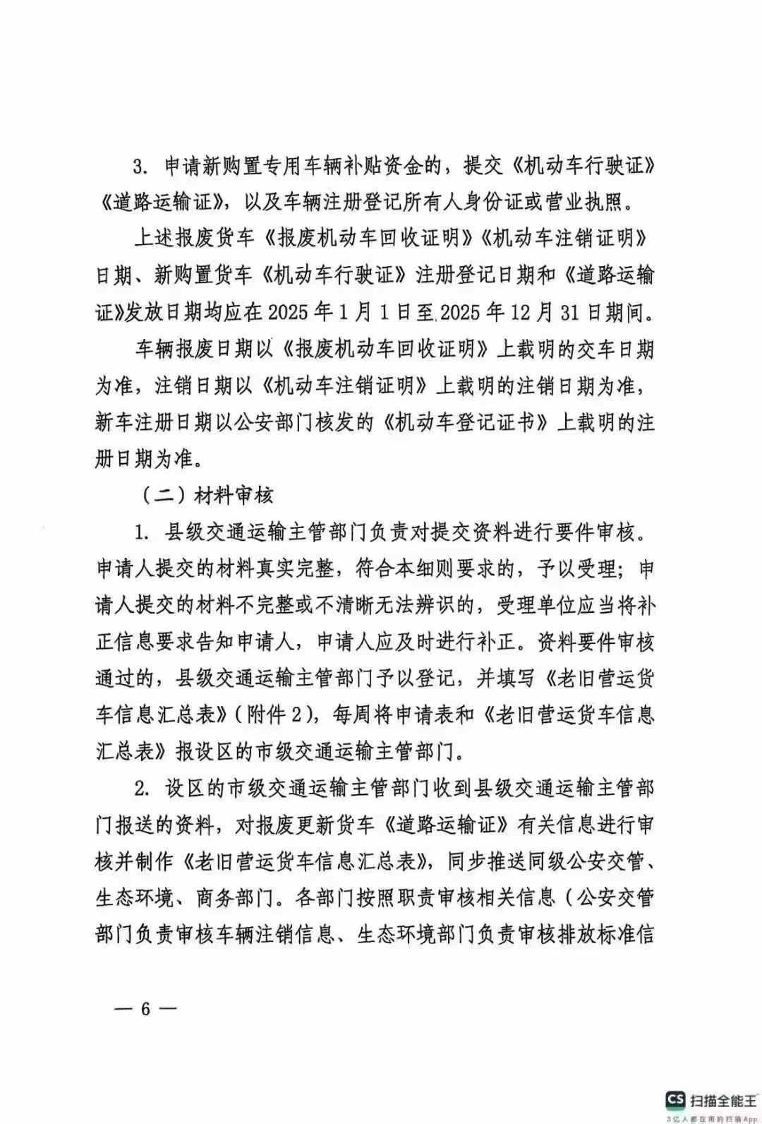 2025年老舊運營貨車報廢以舊換新政策補貼實施細則