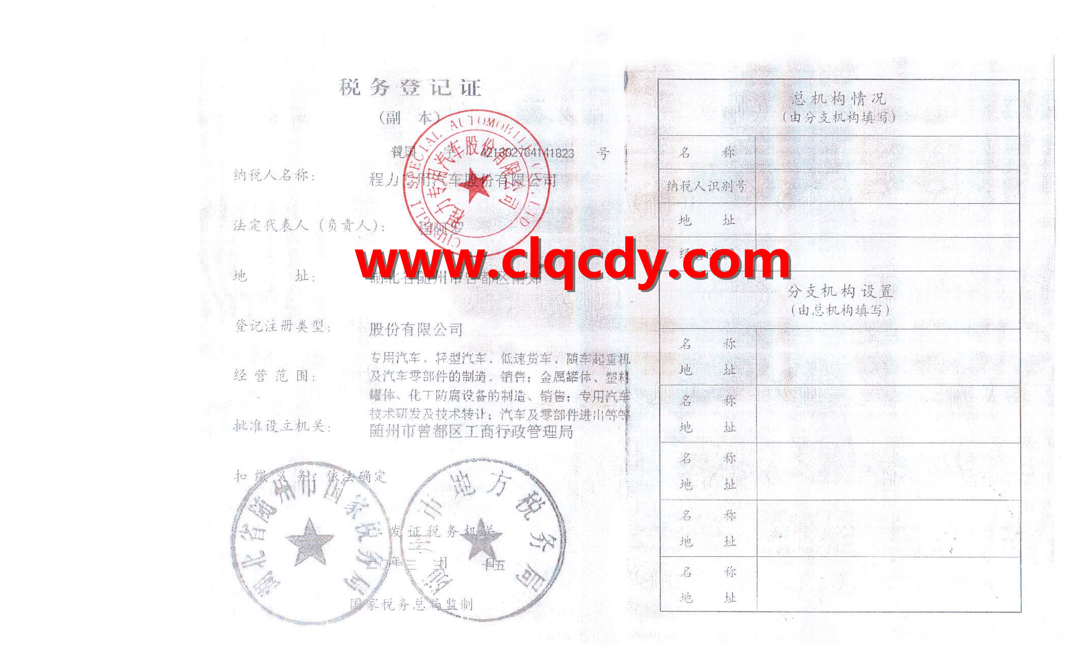 湖北程力營(yíng)業(yè)執(zhí)照、組織機(jī)構(gòu)代碼、稅務(wù)登記證、開(kāi)戶證明。 |