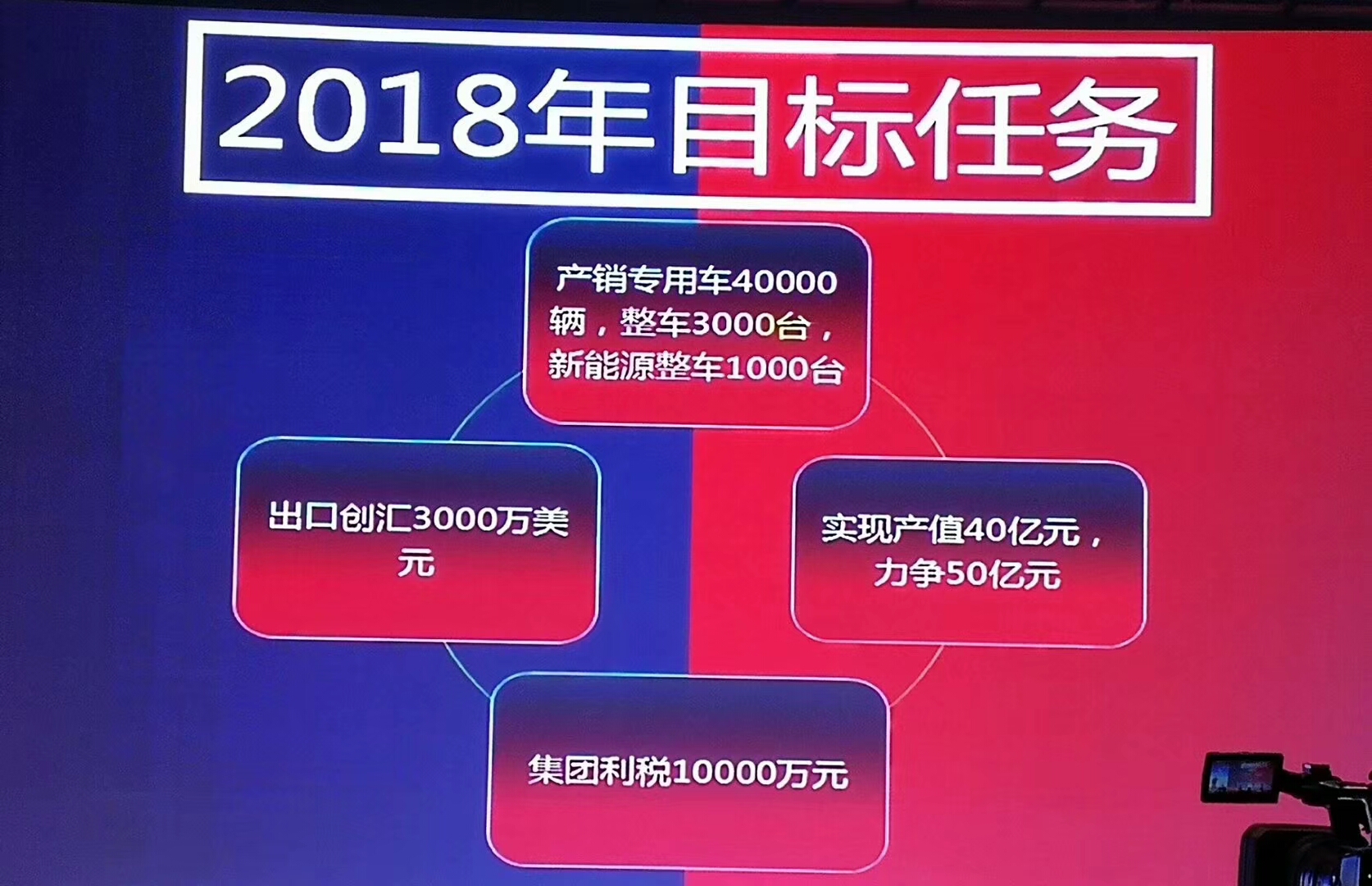 四、2018年目標(biāo)任務(wù):產(chǎn)銷專用車40000輛,整車3000臺,新能源整車1000臺,實(shí)現(xiàn)產(chǎn)值40億元,力爭50億元 |