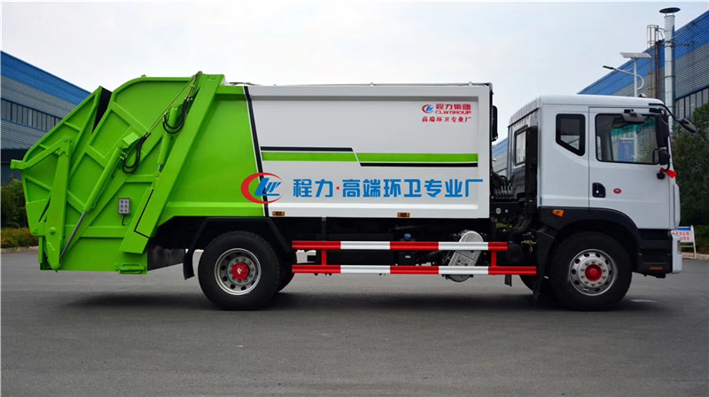 4、智能操作系統(tǒng)采用西門(mén)子PLC一鍵循環(huán),駕駛室內(nèi)與車外均有電控操作盒,后尾部左右各帶一個(gè)操作盒。駕駛室室內(nèi)卸料時(shí)操作,外部裝料時(shí)操作,另帶有一套手動(dòng)應(yīng)急操作,同時(shí)設(shè)有電子自動(dòng)油門(mén),不在需要人工加減油門(mén)來(lái)調(diào)節(jié)工作速度,一個(gè)司機(jī)就可以完成全部操作,也可減少或避免野蠻加油而導(dǎo)致液壓系統(tǒng)故障。 湖北程力汽車壓縮垃圾車國(guó)六東風(fēng)D9壓縮垃圾車多方位圖片展示: