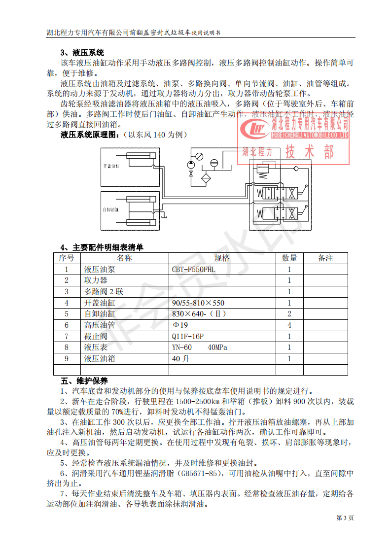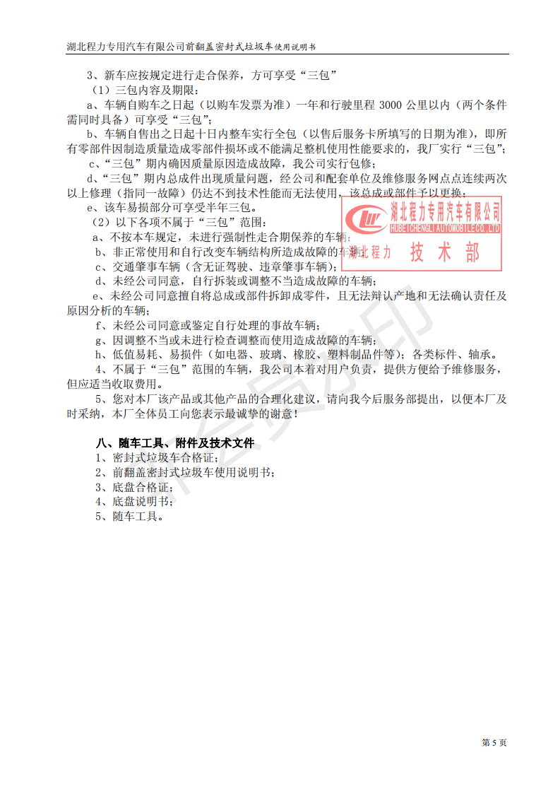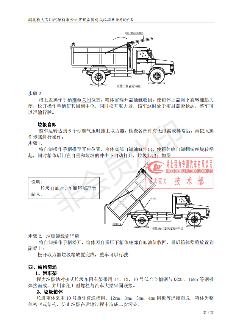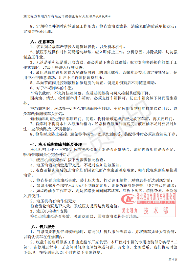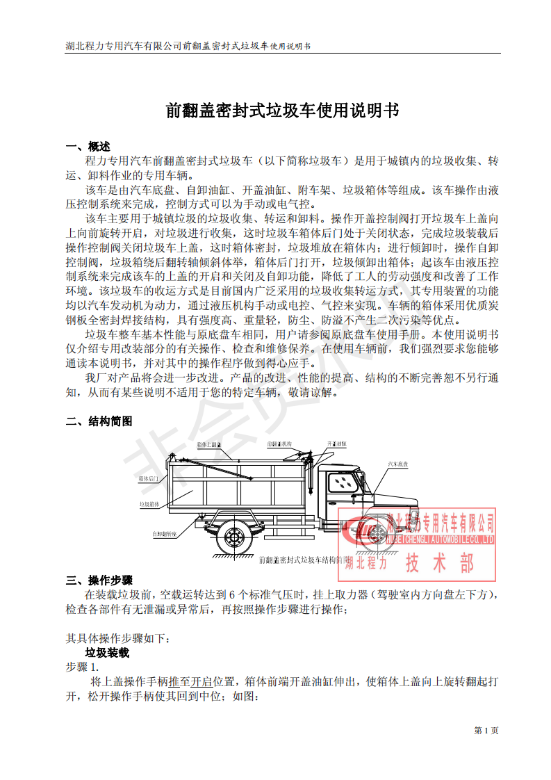 湖北程力密封自卸垃圾車(chē)使用維護(hù)說(shuō)明書(shū)(程力自卸垃圾車(chē)如何使用