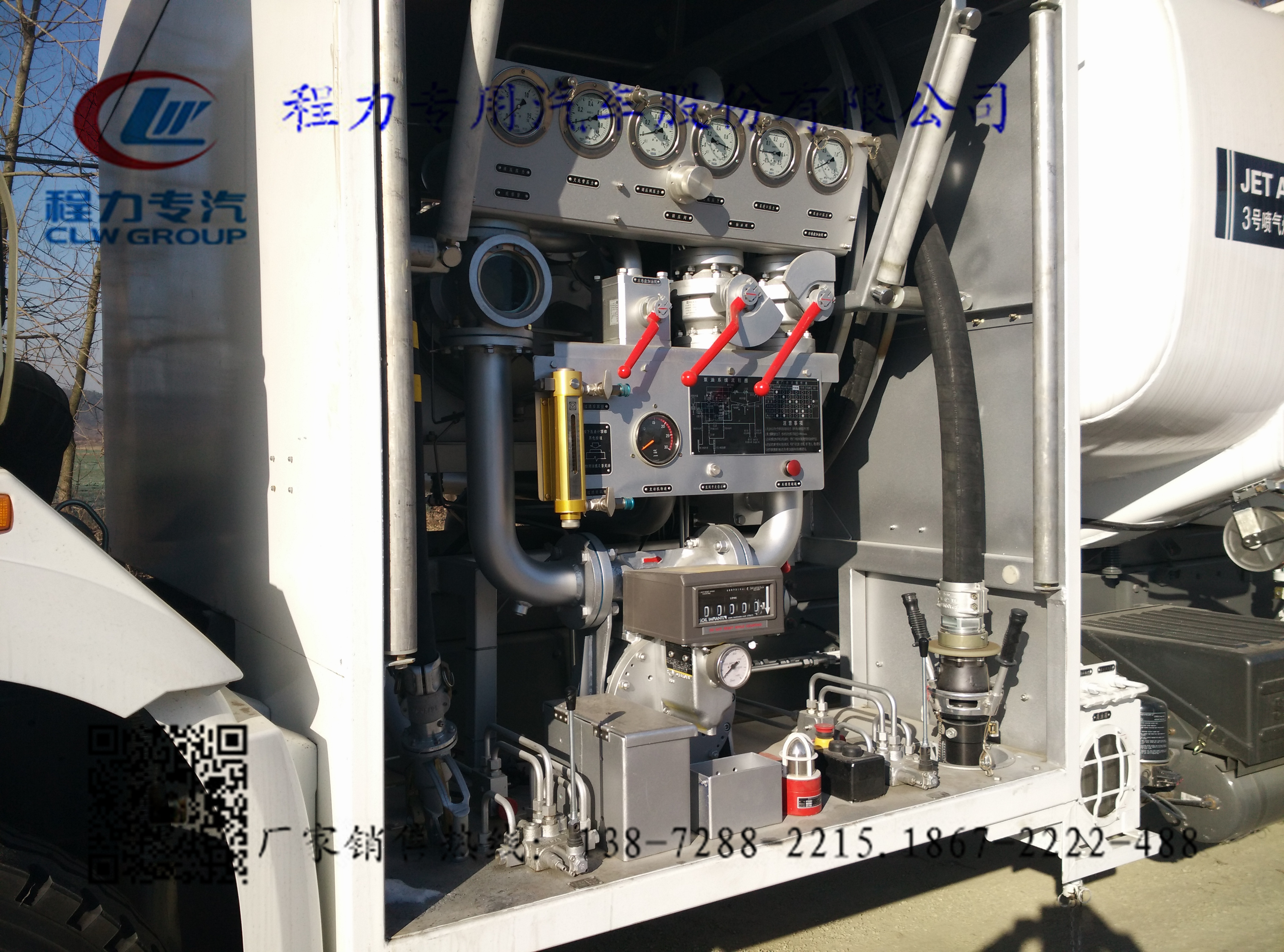 飛機(jī)加油車加油槍卷盤圖片 程力第一臺(tái)飛機(jī)加油車面世:采用東風(fēng)勁卡底盤,整車型號(hào):CLW5072GJYD4型加油車,底盤型號(hào):DFA1070SJ35D6, 實(shí)際容量:5方,總質(zhì)量:7.3噸,整備質(zhì)量:3.865噸,額定載質(zhì)量:3.24噸, 整車長(zhǎng)度:5995*1960*2400mm, 軸距:3300mm,發(fā)動(dòng)機(jī)采用4DW93-84E4一汽解放汽車有限公司無(wú)錫柴油機(jī)廠錫柴發(fā)動(dòng)機(jī),罐體采用4MM不銹鋼板制作。帶歐標(biāo)罐口,導(dǎo)靜電線盤,專用油泵防溢漏探桿及插座,海底閥,浮球液位計(jì),泵轉(zhuǎn)速表,泵進(jìn)口真空表(接管),泵出口壓力表(接管),泵出口采樣閥,過(guò)濾后取樣閥,過(guò)濾分離器排污口取樣閥,取樣閥合并緩速筒,取樣器取樣回收油桶,YC-12型壓差計(jì),閉路目測(cè)透明取樣器,高液位報(bào)警器,低液位報(bào)警器(帶開(kāi)關(guān)),壓力可調(diào)式溢流閥,HYJ-63X接頭閥,80WGF-60/10過(guò)濾分離器,腰輪流量計(jì),卷盤槍。 飛機(jī)加油車細(xì)節(jié)圖片: