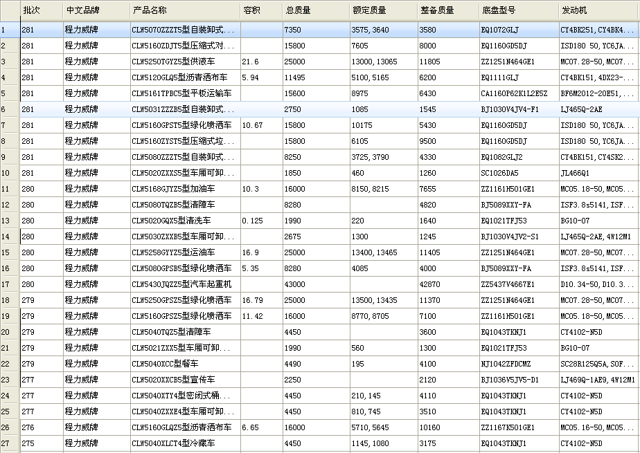 2016年是實(shí)現(xiàn)“十三五”規(guī)劃開局之年,又適逢環(huán)保部實(shí)施國五排放升級(jí),為適應(yīng)市場(chǎng)需要,程力公司在282批新上公告56個(gè),283批又跟進(jìn)了56個(gè)公告,2批公告總量達(dá)到112個(gè),其中國五車型102個(gè),新能源車型9個(gè)。車型覆蓋綠化噴灑車、壓縮式垃圾車、高空作業(yè)車、吸糞車、車廂可卸式垃圾車、自裝卸式垃圾車、掃路車、吸污車、壓縮式對(duì)接垃圾車、清洗吸污車、洗掃車、清洗車、運(yùn)油車、鋁合金運(yùn)油車、腐蝕性物品罐式運(yùn)輸車、鮮奶運(yùn)輸車、粉粒物料運(yùn)輸車、供液車、冷藏車、散裝飼料運(yùn)輸車、清障車、舞臺(tái)車、售貨車、同步碎石封層車、平板運(yùn)輸車、純電動(dòng)車輛等,可謂是新品大盤點(diǎn)。以上車型中,不僅有傳統(tǒng)車型,也不泛為適應(yīng)市場(chǎng)新形勢(shì)而開發(fā)的智能型車。 下面是湖北程力國五車輛一些公告