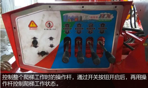 控制整個(gè)爬梯工作時(shí)的操作桿,通過開關(guān)按鈕開啟后,再用操作桿控制爬梯工作狀態(tài)。