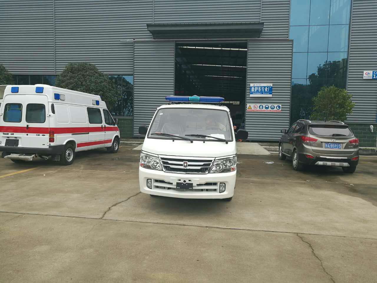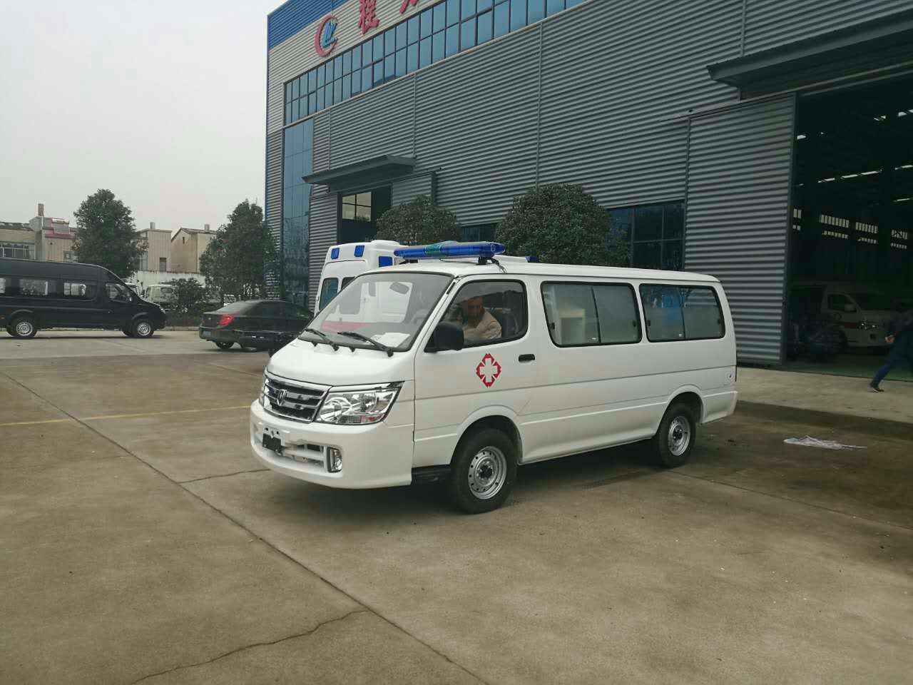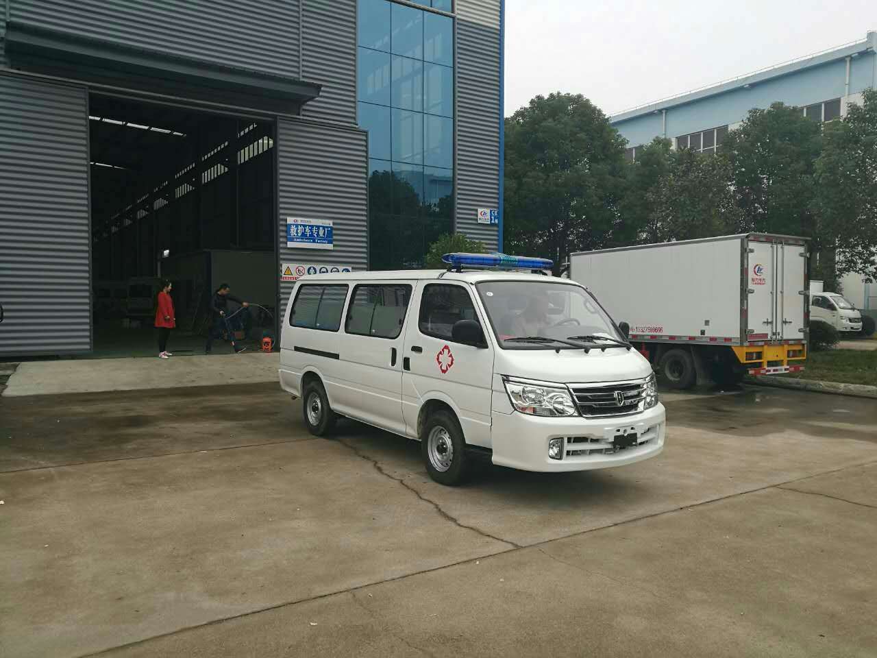 國5救護車(金杯轉(zhuǎn)運型救護車)SY5033XJH-D3S1BH(國五汽油機),功率:73.5kW,軸距:2590mm,輪胎型號:185R14,發(fā)動機型號:4G19,排量:2.0,帶前后空調(diào),電動門窗,方向助力,后醫(yī)療艙配置(自動上車擔架,氧氣瓶5L,耐減,防滑,)