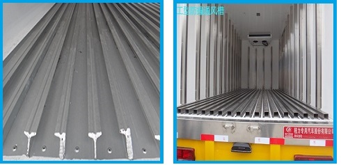 通風系統(tǒng):底板通風槽、廂內(nèi)四周通風隔板。 增強制冷機的冷風循環(huán)效果,安裝通風槽后貨物不會緊貼廂體側(cè)壁與廂底,通風槽材質(zhì)為鋁合金型材,結構簡單易清潔。運輸肉類或者藥品物品、箱體物品,需要加裝通風槽,防止變質(zhì)。 |