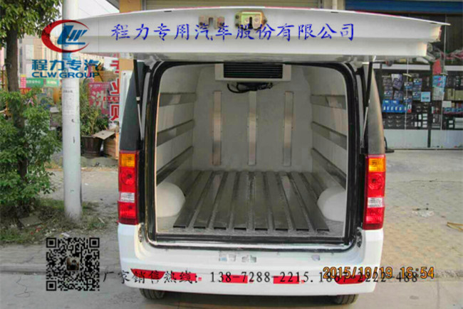 1.底盤配置:采用東風(fēng)小康汽車有限公司EQ5026XXYF1整車面包車身,配置重慶小康動力有限公司DK15-09汽油發(fā)動機,109馬力,國五排放標準,5檔變速箱,有動力轉(zhuǎn)向,駕駛室原廠空調(diào),軸距3050mm,總質(zhì)量1970kg,2人座位額載530,5人座位335kg,整備1310kg。 2.上裝配置:冷藏廂內(nèi)部有效容積3.6立方,廂體蒙皮內(nèi)玻璃鋼,外不銹鋼,花紋鋁底板,8cm聚氨酯保溫,不銹鋼門鎖件,配后雙開門,安裝-18度制冷機組可選。 3.其他說明:該款面包冷藏車有2人座位和5人座位兩種,非常適合做藥品,疫苗冷藏運輸車,錫膏,熟食等城市冷鏈快遞等用途,適合城市與機場對接冷鏈快運,最高時速高達135公里每小時