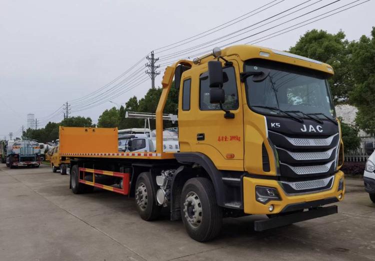 江淮K5小三軸,錫柴290馬力,法士特8檔變速箱 11.00輪胎,280大梁,空調(diào),ABS,行駛記錄儀,電動(dòng)玻璃升降,電動(dòng)翻轉(zhuǎn),氣囊座椅。 12噸上裝,12噸后托臂,重心低,受力平均,平板尺寸9.6米,平板寬2.55米,10噸液壓卷?yè)P(yáng)。 湖北程力國(guó)六江淮K5小三軸平板清障車(平板長(zhǎng)度9.6米)程力牌CL5250TQZH6ZQ型清障車圖片價(jià)格: