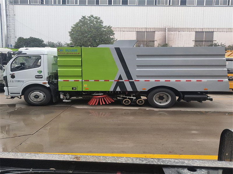 湖北程力集團(tuán)國(guó)六東風(fēng)大多利卡洗掃車采用3800軸距朝柴170馬力,上裝副發(fā)動(dòng)機(jī)采用康明斯140馬力發(fā)動(dòng)機(jī),外形尺寸(長(zhǎng)X寬X高)mm:7000*2200*2700;底盤采用245真空胎;額定載質(zhì)量(kg):4355;整備質(zhì)量(kg):7445;最大總質(zhì)量(kg):11995;垃圾箱和清水箱容積均為4立方(不銹鋼材質(zhì));清掃寬度(mm):2800-3200; 上裝配置:帶2個(gè)中置掃盤,康明斯140馬力副發(fā)動(dòng)機(jī);意大利馬達(dá);德國(guó)高壓水泵(前沖/側(cè)噴/中噴/后噴霧(不銹鋼噴嘴)/側(cè)沖洗水槍/垃圾箱自潔裝置);萬向高壓路沿清洗,威龍低壓泵(前沖);不銹鋼垃圾箱;德國(guó)控制器;美國(guó)傳感器;尾部箭頭燈;機(jī)油、垃圾箱、水箱均帶防溢或低位報(bào)警裝置;倒車及洗掃狀態(tài)室內(nèi)監(jiān)視器;倒車自動(dòng)保護(hù)裝置;20米高壓沖洗卷盤。清掃寬度3.5m;吸入粒度110mm;全PLC一鍵電腦控制 。 湖北程力東風(fēng)凱普特K7道路清掃車國(guó)六掃路車洗掃車圖片: