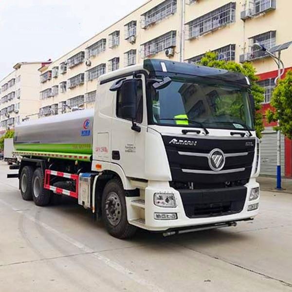 湖北程力國六福田歐曼GTL后雙橋灑水車選裝配置: 1、可選裝氣動球閥開關駕駛室內(nèi)控制; 2、可選裝罐體尾部帶LED箭頭指示燈; 前沖(噴)、后灑、帶側噴(花灑)、帶后工作平臺、平臺上安裝綠化灑水高炮(炮噴射形狀可調(diào)節(jié):直沖、大雨、中雨、毛毛雨、霧狀、可連續(xù)調(diào)節(jié),360°旋轉(zhuǎn)),配消防接口,自流閥,濾網(wǎng),帶自吸自排功能。 湖北程力國六福田歐曼GTL后雙橋灑水車是一款采用國六排放標準福田歐曼GTL后雙橋原裝底盤改裝的環(huán)衛(wèi)灑水車,該車配置豪華,駕乘舒適,該車罐體容積:18-20立方米,標配前沖、后灑、側噴、后平臺高炮,是園林綠化、小區(qū)物業(yè)、公路養(yǎng)護的常用車型。 湖北程力國六歐曼后雙橋18-20方綠化噴灑車(灑水車)程力威牌CLW5250GPSBDP型綠化噴灑車圖片價格:
