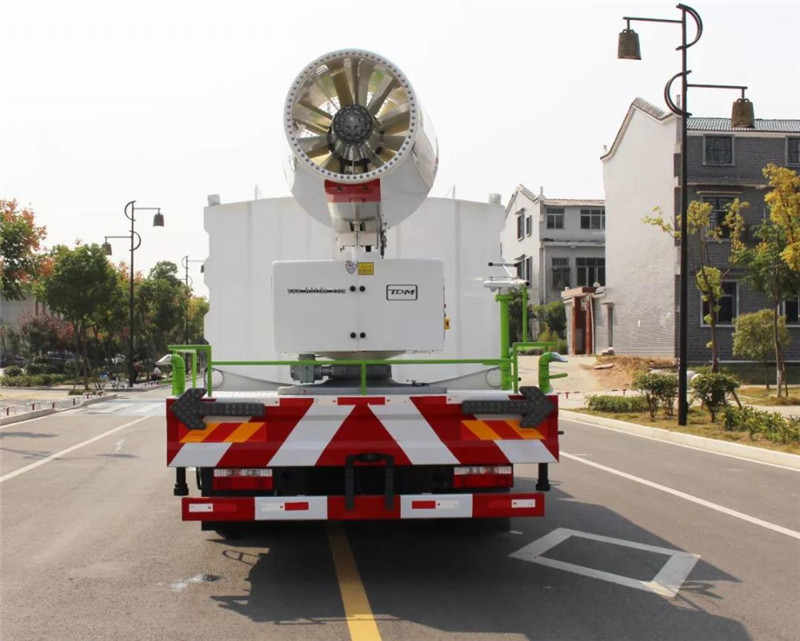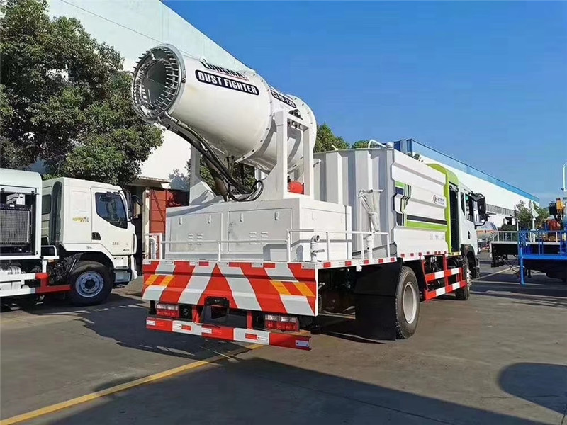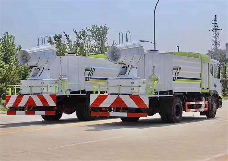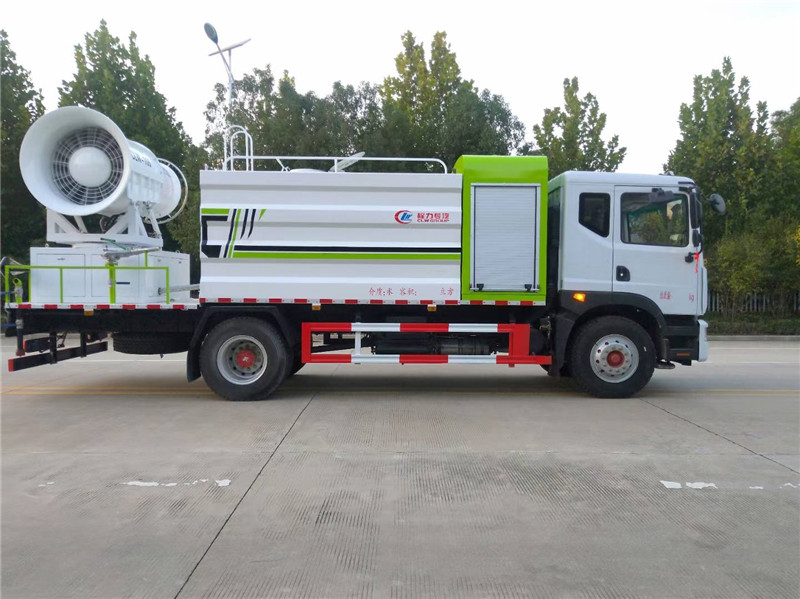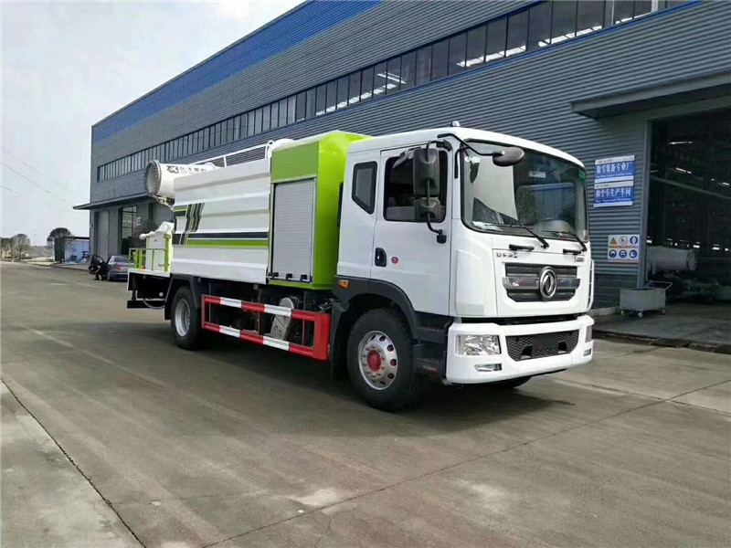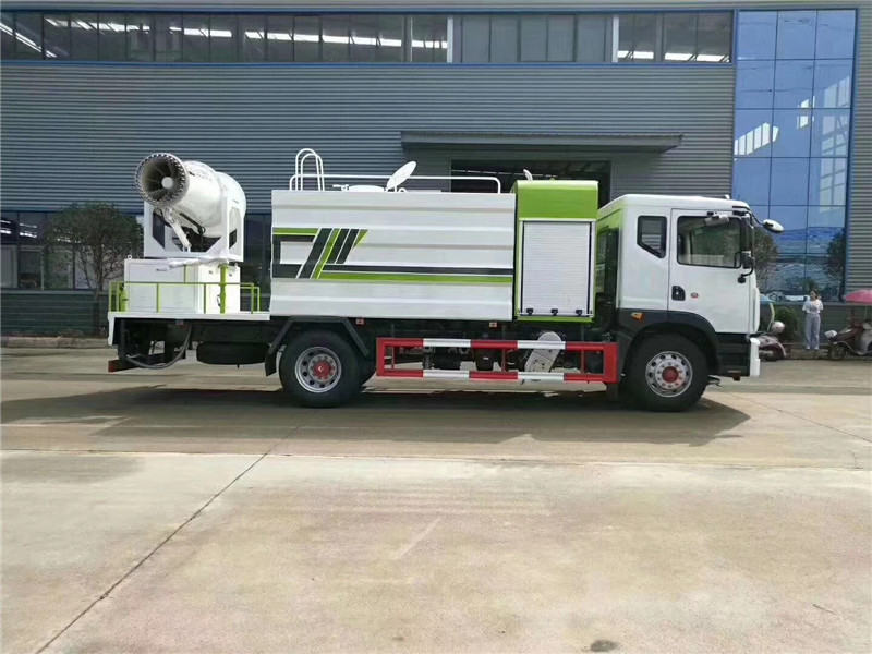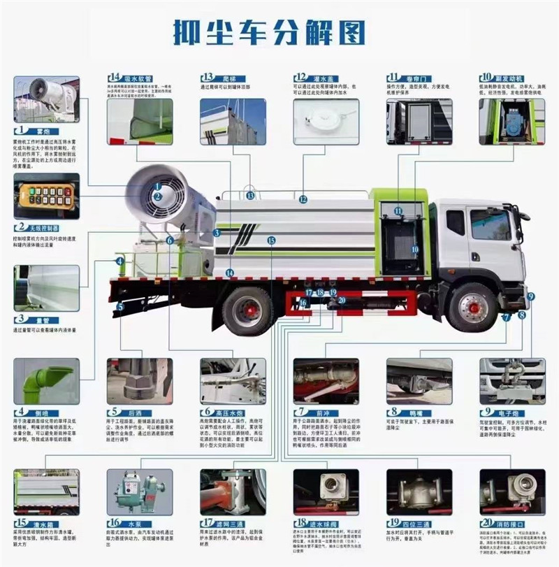 底盤(pán)配置:采用國(guó)六東風(fēng)新款多利卡D9系列底盤(pán)生產(chǎn),軸距4500mm,底盤(pán)發(fā)動(dòng)機(jī)為康明斯230馬力,295真空胎,東風(fēng)6檔變速箱,國(guó)六排放標(biāo)準(zhǔn),罐體容積:10立方,罐體鋼板采用Q235碳鋼鋼板,采用方形瓦楞設(shè)計(jì),外觀大氣靚麗,后工作平臺(tái)加裝高效率車(chē)載式風(fēng)送噴霧機(jī),噴藥炮霧化效果好,可遠(yuǎn)程噴霧,東風(fēng)多利卡D9抑塵車(chē)帶前沖后灑、側(cè)噴、平臺(tái)高炮、自流閥及消防接頭各1個(gè)、標(biāo)配億豐泵或金龍泵,可選裝50-100米噴霧機(jī)。 上裝配置:罐體容積10立方,罐體為方形罐,罐體內(nèi)部做防腐,主管路鍍鋅,帶前部沖洗路面噴灑裝置、后部扇形降塵噴灑裝置,兩側(cè)面噴灑裝置,帶后部工作平臺(tái)、平臺(tái)上安裝綠化灑水炮(炮噴射形狀可調(diào)),可調(diào)直沖狀、大雨、中雨、毛毛雨,可連續(xù)調(diào)節(jié),采用中聯(lián)唯佳大流量水泵,消防接口可自流,音樂(lè)喇叭,50-100米噴霧機(jī)組。 噴霧機(jī)配置:TDM-M08型,可無(wú)線操作,及手動(dòng)操作。根據(jù)需求選配的霧炮機(jī)霧化距離在60-120米不等(靜風(fēng)室內(nèi)距離),實(shí)際射程:(霧化射程會(huì)受濕度、溫度、風(fēng)速等各方面天氣因素的影響,另外天氣干燥地區(qū)一部分在空中被蒸發(fā)掉)。CLW-100型60米,副發(fā)電機(jī)組功率50(Kw),風(fēng)機(jī)功率15(Kw),不銹鋼多級(jí)離心泵功率5.5(Kw)。100米無(wú)線操作,霧化距離60米(靜風(fēng)室內(nèi)距離)實(shí)際射程:(霧化射程會(huì)受濕度、溫度、風(fēng)速等各方面天氣因素的影響,另外天氣干燥地區(qū)一部分在空中被蒸發(fā)掉)。 湖北程力國(guó)六東風(fēng)D9方罐抑塵車(chē)程力威牌CLW5180TDYD6型多功能抑塵車(chē)圖片價(jià)格: