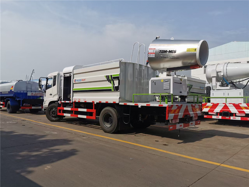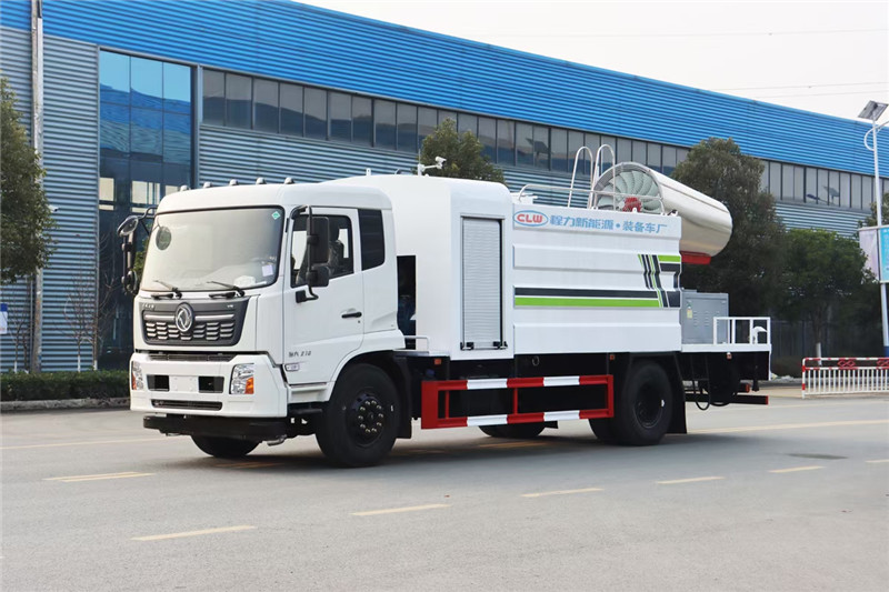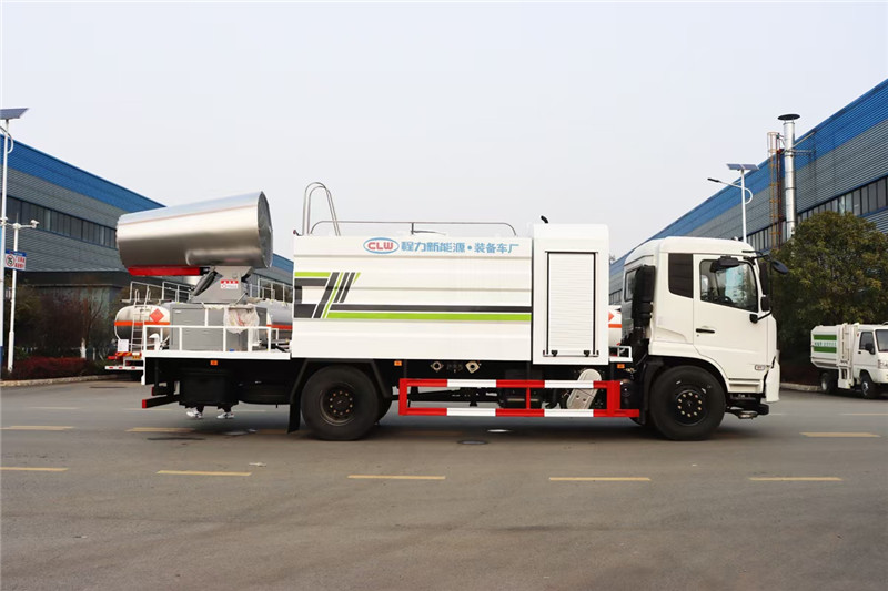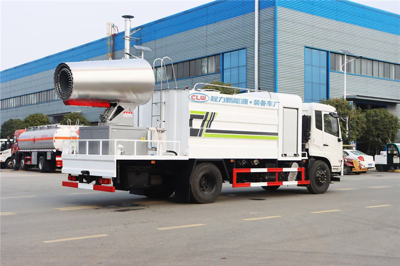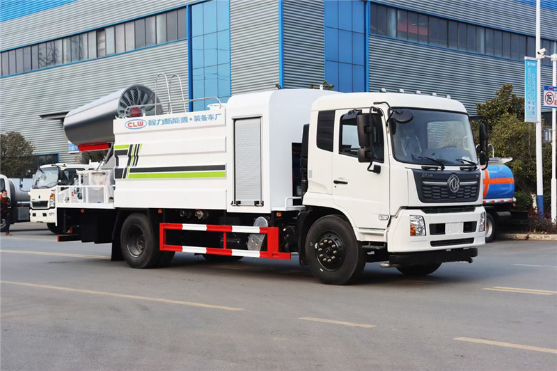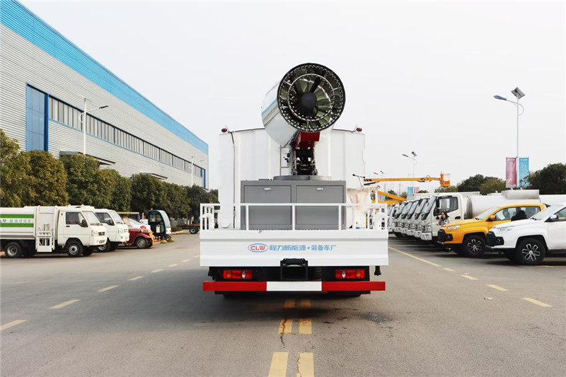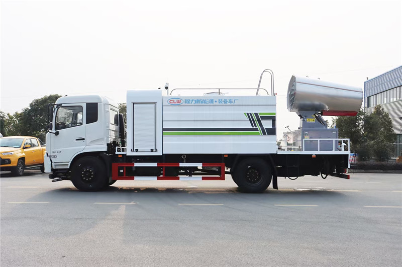 湖北程力國(guó)六東風(fēng)天錦60-100米抑塵車(方罐)程力威牌CLW5181TDYD6型多功能抑塵車廠家配置: 湖北程力國(guó)六東風(fēng)天錦抑塵車底盤配置:底盤采用東風(fēng)天錦國(guó)六底盤,公告型號(hào):CLW5181TDYD6,康明斯6缸ISB210馬力發(fā)動(dòng)機(jī),4700軸距,275真空胎,6檔變速箱,原裝空調(diào),ABS。 湖北程力國(guó)六東風(fēng)天錦抑塵車上裝配置:罐體容積11.3立方,罐體為方形罐,罐體內(nèi)部做防腐,罐體鋼板采用Q235碳鋼鋼材,整車具備灑水車的一切功能(前沖、后灑、側(cè)噴、平臺(tái)高炮),氣動(dòng)球閥控制灑水功能,水位報(bào)警器,標(biāo)配億豐60/90水泵,自流閥及消防接頭各1個(gè)、水管2根。后平臺(tái)安裝一臺(tái)60米霧炮。 湖北程力國(guó)六東風(fēng)天錦抑塵車霧炮參數(shù):CLW-100型60米,副發(fā)電機(jī)組功率50(Kw),風(fēng)機(jī)功率15(Kw),不銹鋼多級(jí)離心泵功率5.5(Kw)。100米無(wú)線遙控操作,霧化距離60米(靜風(fēng)室內(nèi)距離)實(shí)際射程:(霧化射程會(huì)受濕度、溫度、風(fēng)速等各方面天氣因素的影響,另外天氣干燥地區(qū)一部分在空中被蒸發(fā)掉)。 | 湖北程力國(guó)六東風(fēng)天錦60-100米抑塵車(方罐)程力威牌CLW5181TDYD6型多功能抑塵車圖片價(jià)格: