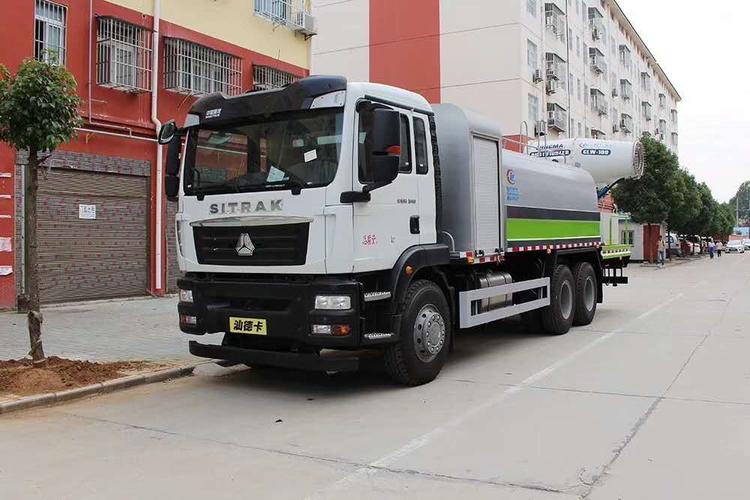 底盤型號(hào):ZZ5256XXYN504GF1,重汽汕德卡后雙橋(C5H-M駕駛室),MC07.31-60(德國(guó)曼310馬力國(guó)六發(fā)動(dòng)機(jī))發(fā)動(dòng)機(jī),HW19710(重汽10檔)變速器+HW50法蘭式取力器;H153自調(diào)臂前軸(5噸鼓);153沖焊自調(diào)臂雙后橋(10噸鼓);雙層車架(8+5/280);ZF8198方向機(jī);前后標(biāo)準(zhǔn)版多片簧(11/10);中位杠(金屬);帶ABS(4S/4M);標(biāo)準(zhǔn)版排氣系統(tǒng);無(wú)氣候包。11.00R20鋼絲胎。 上裝配置:罐體容積:16立方,罐體為方圓形,罐體做防腐防銹處理,整車具有灑水車的一切功能。后工作平臺(tái):龍馬80米噴霧機(jī)組,全自動(dòng)360°旋轉(zhuǎn),配套動(dòng)力:75KW柴油發(fā)電機(jī)組,風(fēng)機(jī)功率:18.5KW。帶操作。手自一體化。 湖北程力國(guó)六汕德卡后雙橋多功能抑塵車程力威牌CLW5250TDYZ6型多功能抑塵車CLW5251TDYZ6型多功能抑塵車圖片價(jià)格: